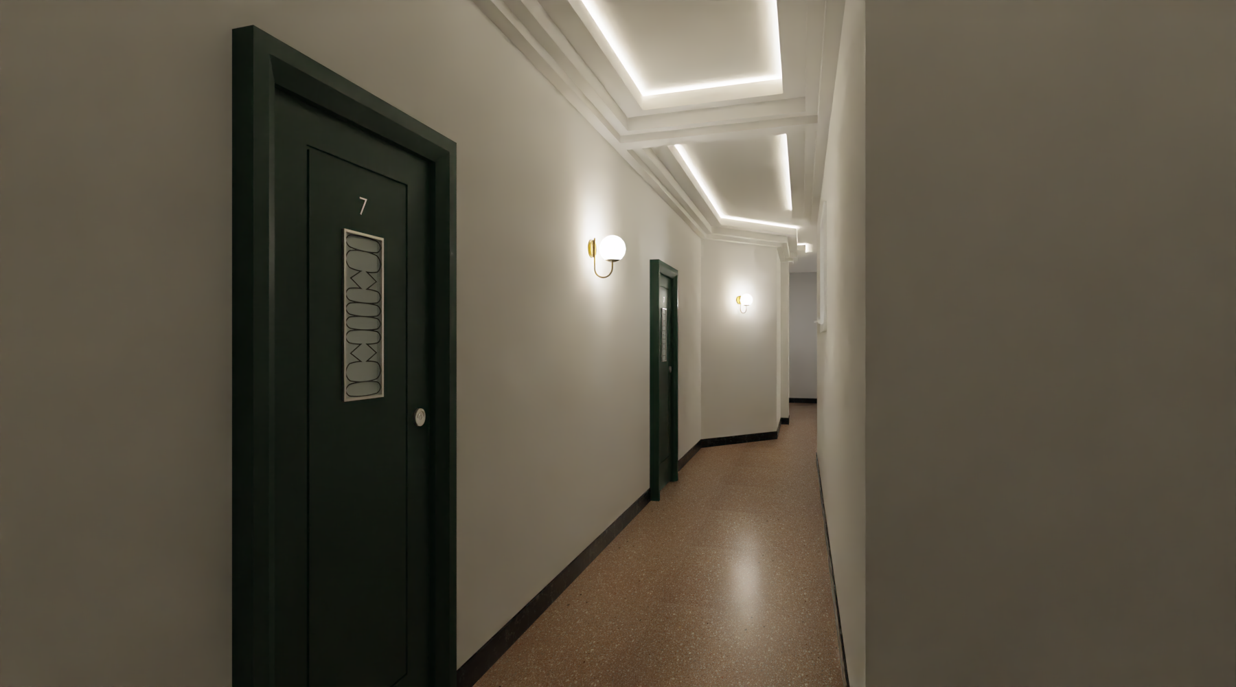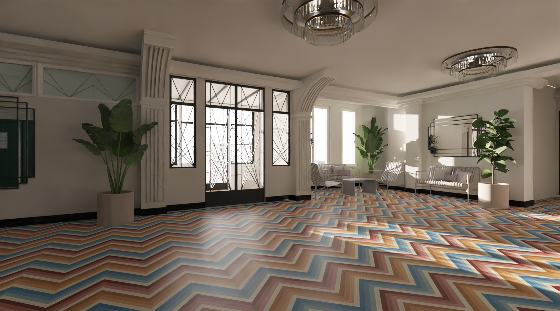 Le projet prévoit leur rénovation en cohérence avec le style de l’époque avec la mise en place des moulures et des corniches pur une redistribution globale de l’électricité. Des interventions ponctuelles sont prévues pour la restitution des mosaïques d’origine et les baies vitrées situées aux entrées du bâtiment.