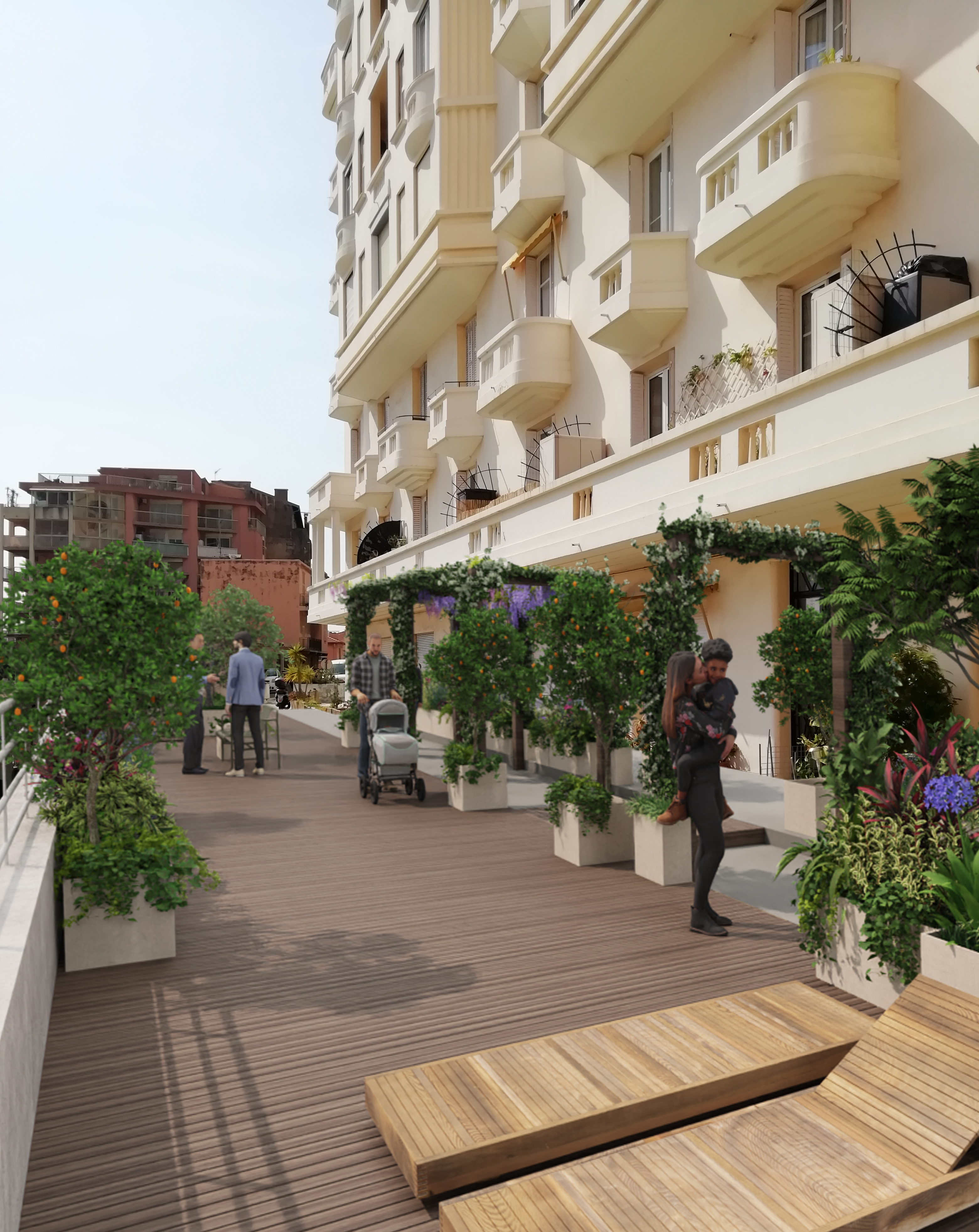 La terrasse côté mer; aujourd’hui inutilisée, sera végétalisée pour permettre aux copropriétaires une réappropriation de l’espace.