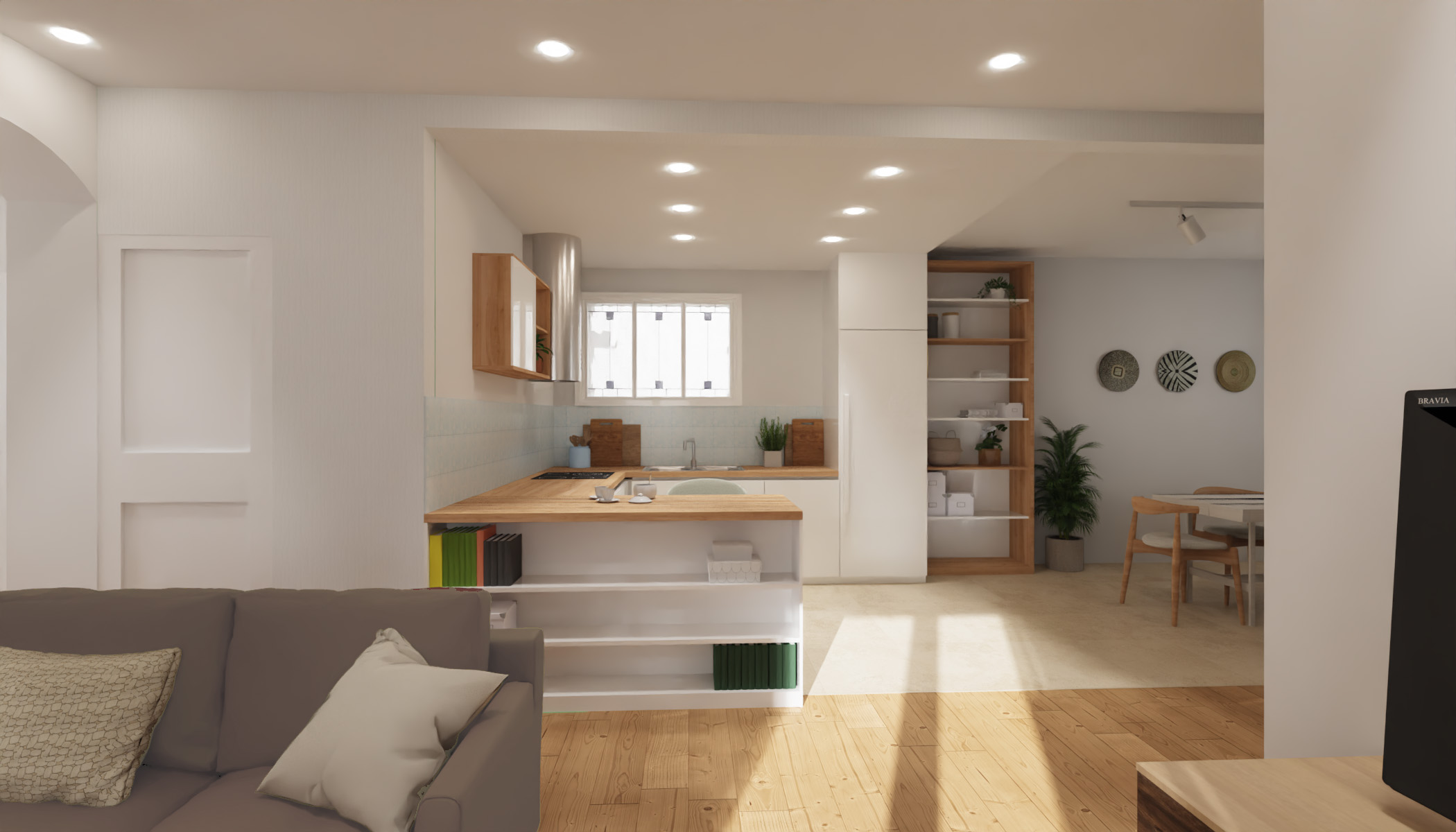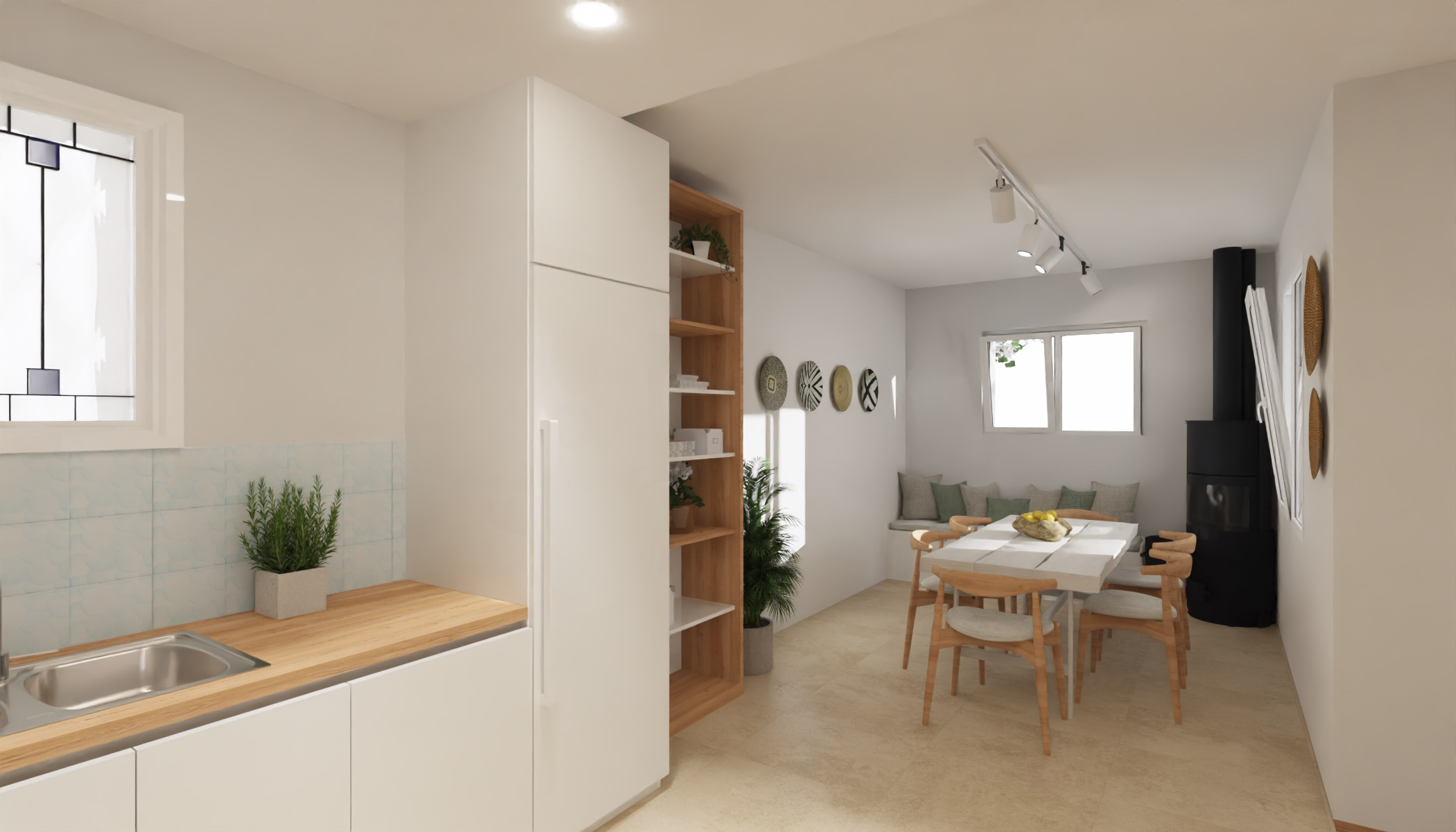 La maison construite dans les années ’50 est située dans le quartier de la Poudrière avec une belle vue mer. Le souhait de la cliente est d’aménager l’ensemble de la maison dans une démarche écologiste. L’autonomie énergétique est à la base de chaque intervention. La maison a un terrain agricole limitrophe; la récupération des eaux pluviales permettra d’utiliser une partie de l’eau pour l’arrosage des arbres fruitiers et une autre pour l’usage domestique.